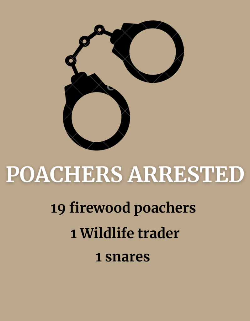 With the thick bush, and the enhanced fear we have seen a reduction in the number of firewood poaching contacts.