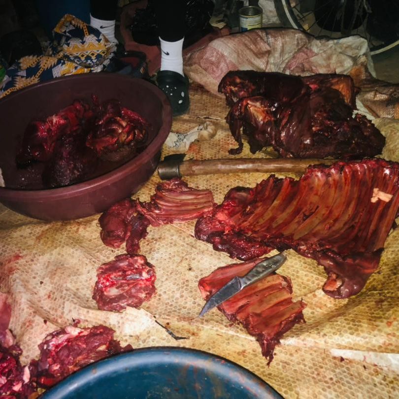 The first arrest was made after a tip off of two individuals selling dried bush meat at a local market. Immediately our teams went undercover and managed to catch both culprits red handed.Unfortunately they had already sold a large portion of the meat, and upon arrest only had about 18kgs rolled up into individual bundles. Regardless, they were arrested and charged.
