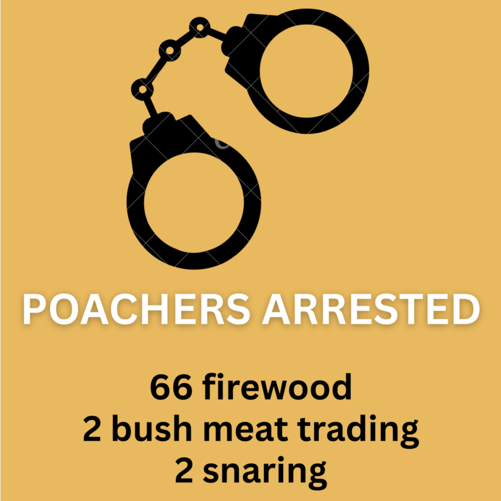 Besides the endless firewood poaching arrests made, we managed to apprehend a further four individuals in two separate operations for the illegal trade in bush meat, and snaring.